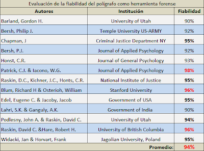Más información en la web de la American Polygraph Association con un resumen de los estudios de fiabilidad realizados.